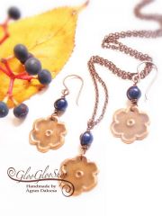 Vörösréz alapanyagból, teljesen kézzel készült, merev, antikolt karperec, virág mintás dombornyomattal.