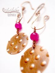 A vörösréz lapkákat élénk almazöld achát (6 mm) gyöngyökkel kötöttem össze.